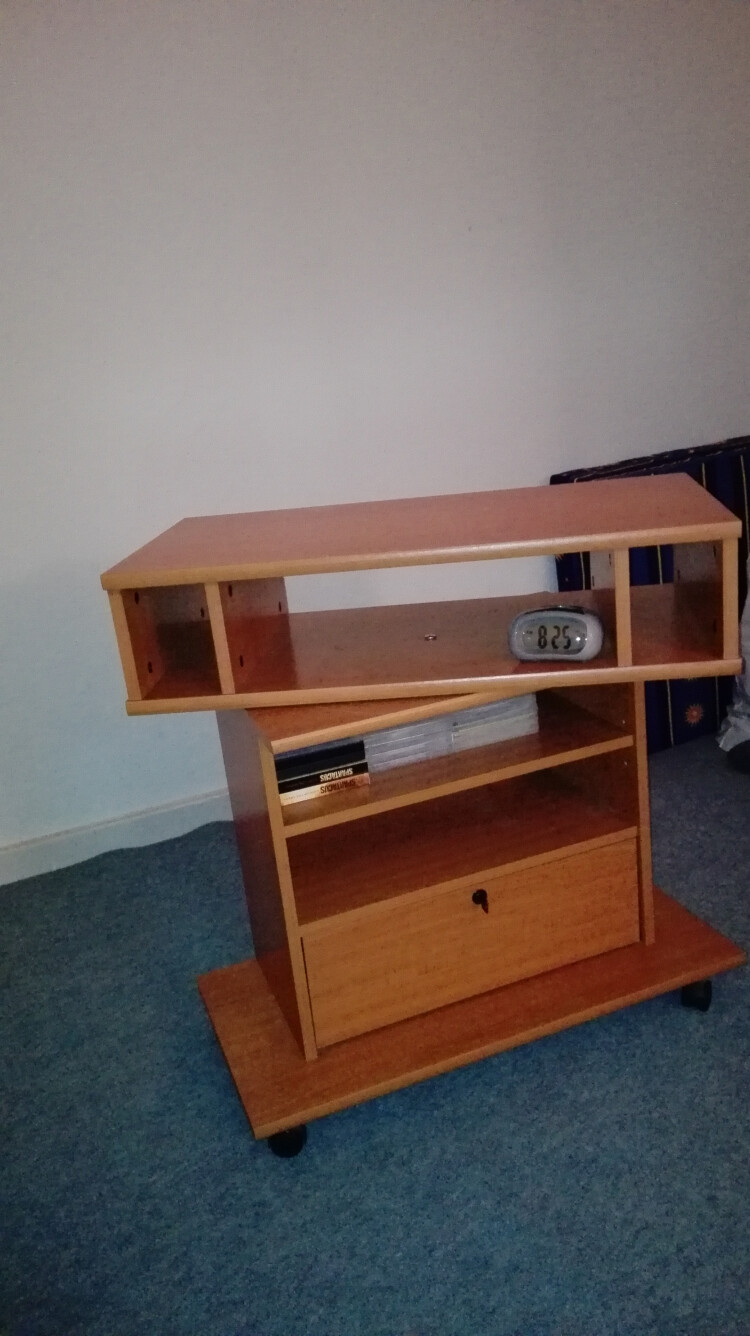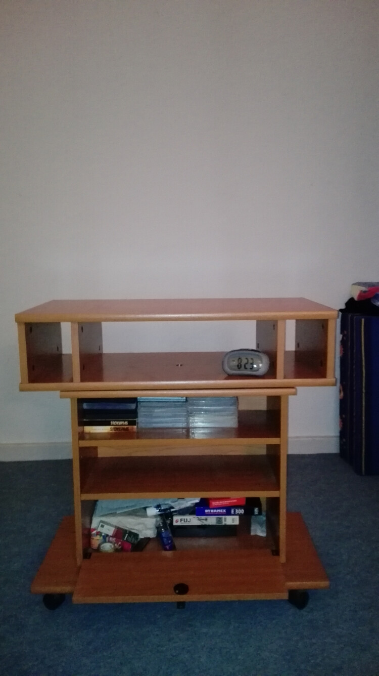 Ich möchte diesen Fernsehtisch ohne Inhalt verschenken. Er hat keine Gebrauchsspuren und das obere Teil/ Fach lässt sich etwas nach links oder rechts wenden. Bitte nur selbst abholen.
