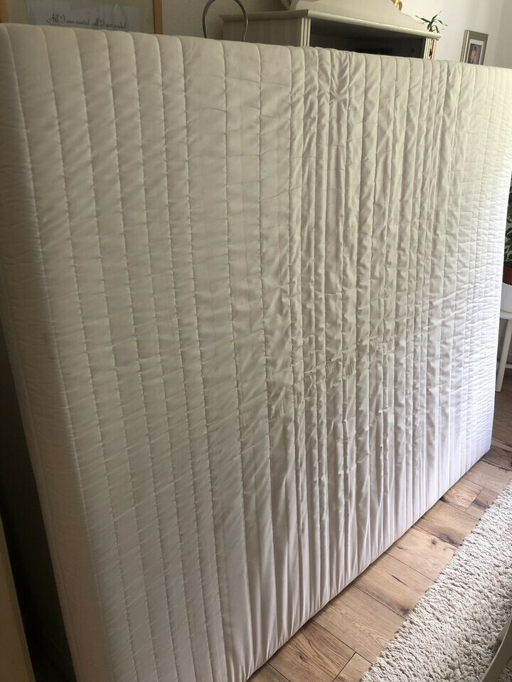 Matratze ist gebraucht, von der einen Seite io, auf der anderen leider ein Urinfleck vom Sohn, ist zwar behandelt, aber nicht mehr raus gegangen, schaffen aber bestimmt Matratzenreiniger oder so.